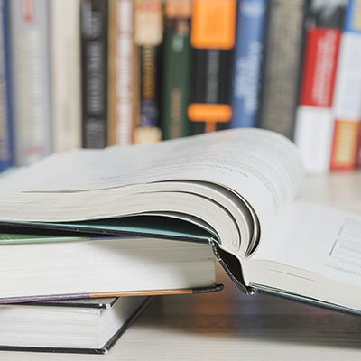 Close up of a stack of books