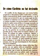 La autora narra una aventura de don Quijote sobre un caballo de madera llamado Clavileño, de cómo fue salvado de un incendio y guardado por años en una torre. Clavileño, es utilizado por unos duques, para hacerle una broma a Don Quijote y a Sancho Panza, en la segunda parte de la novela titulada Don Quijote de Mancha, escrita por Miguel de Cervantes Saavedra