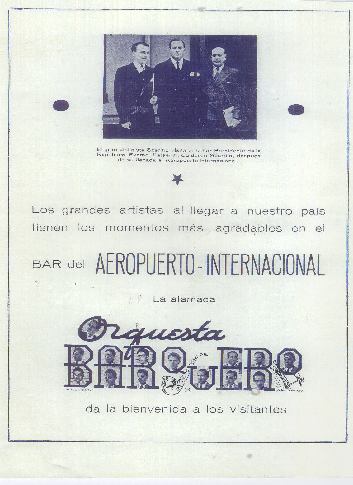 Afiche de invitación al baile en el Aeropuerto La Sabana con la Orquesta Barquero